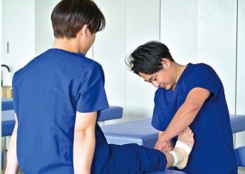 まずは柔道整復師の学修をし、急性外傷の処置や対応を学び、その知識を応用し予防、トレーニングなどサポート全般ができる現場に強い柔道整復師、トレーナーを育てます。