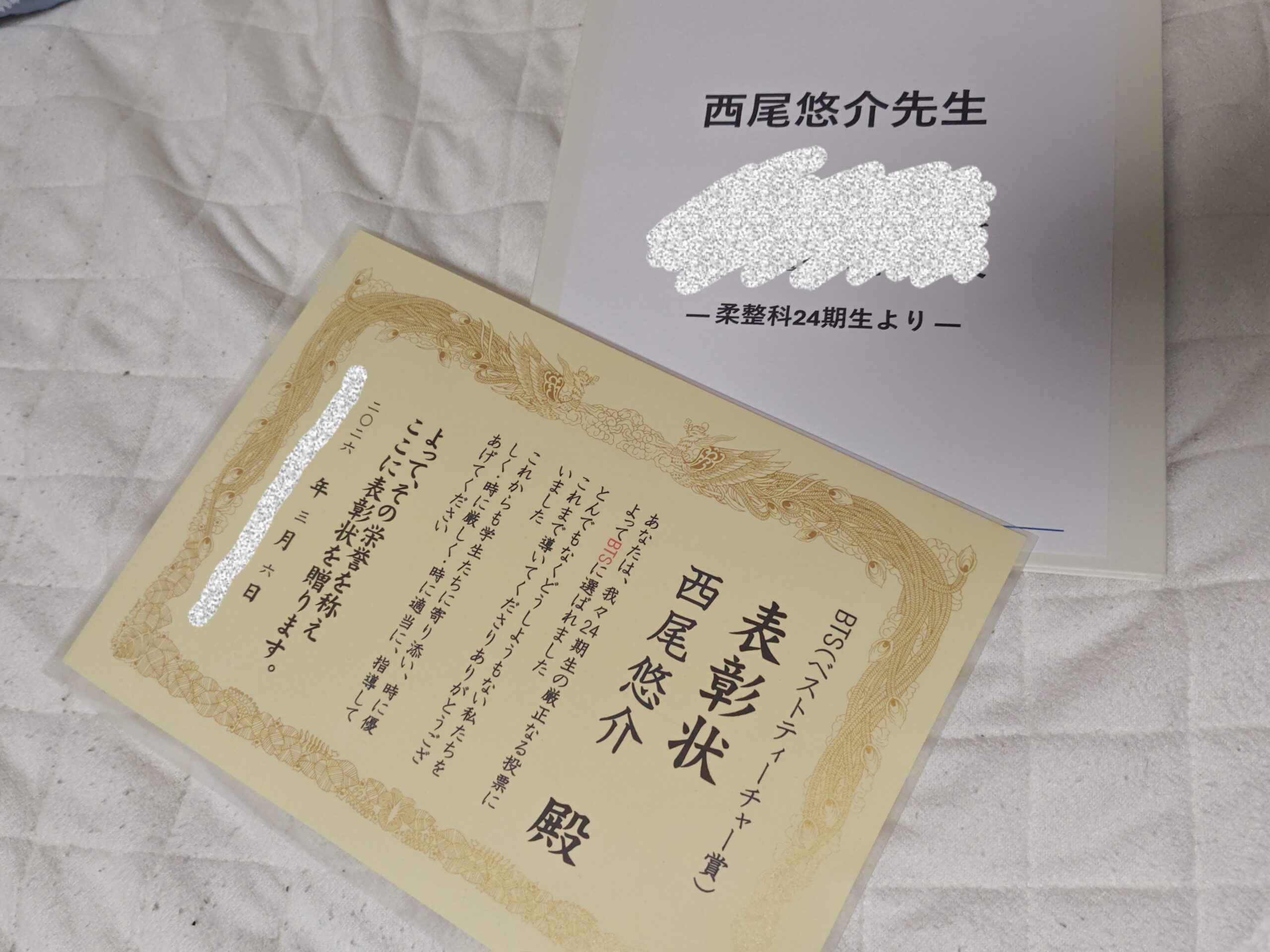 学生間の投票で決まるベストティーチャー賞に選出されました!
