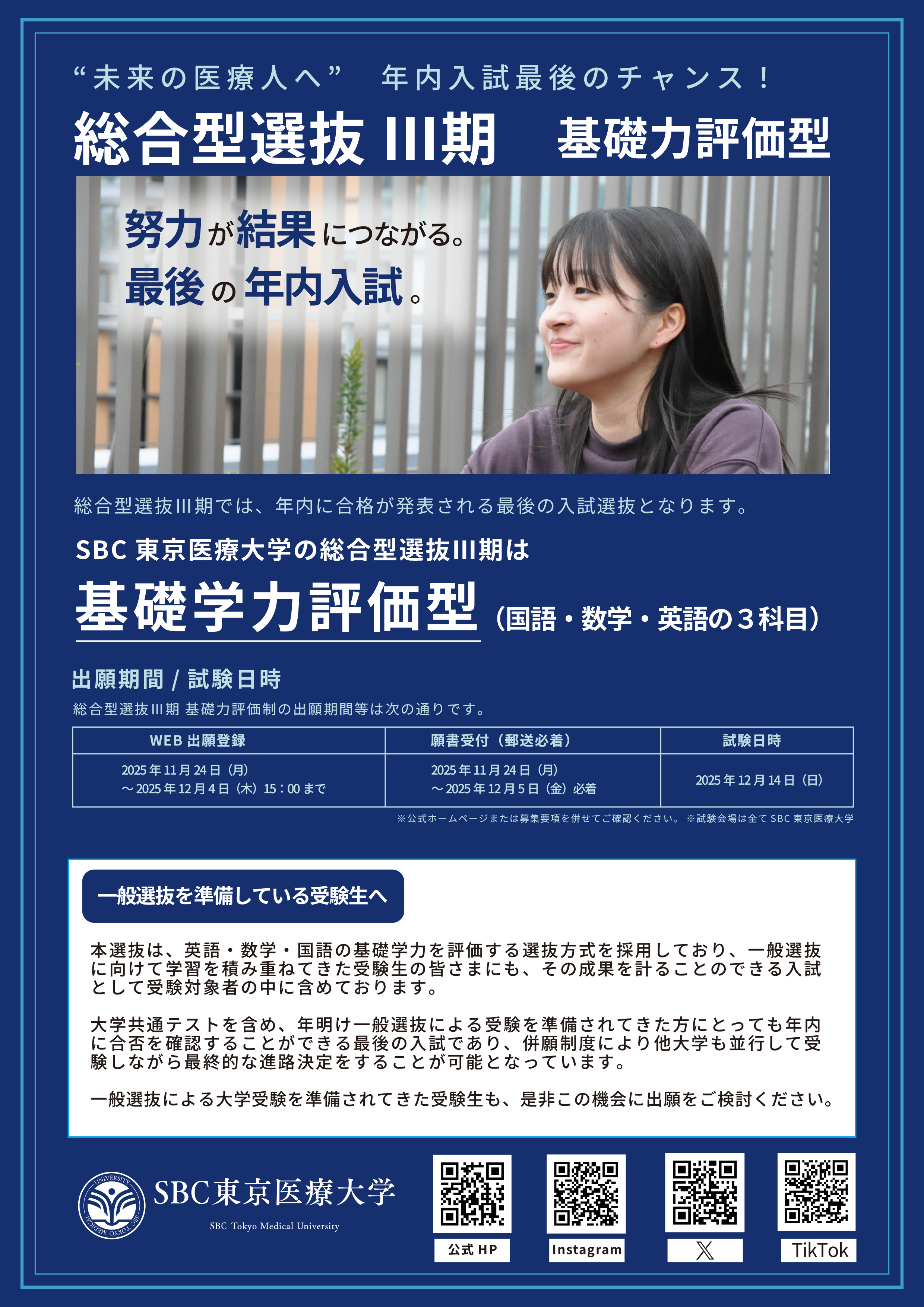 (受験生へ)総合型選抜Ⅲ期 願書受付は11月24日から