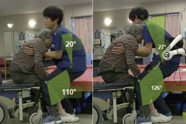 ロボットスーツを着ると、介護士はスーツの特性に合わせて体をより前に傾けるようになり、腰を使う動きが増えました。結果として、車いすから立ち上がる時間が短くなり、立った姿勢を保つ時間が長くなるという変化が見られました。