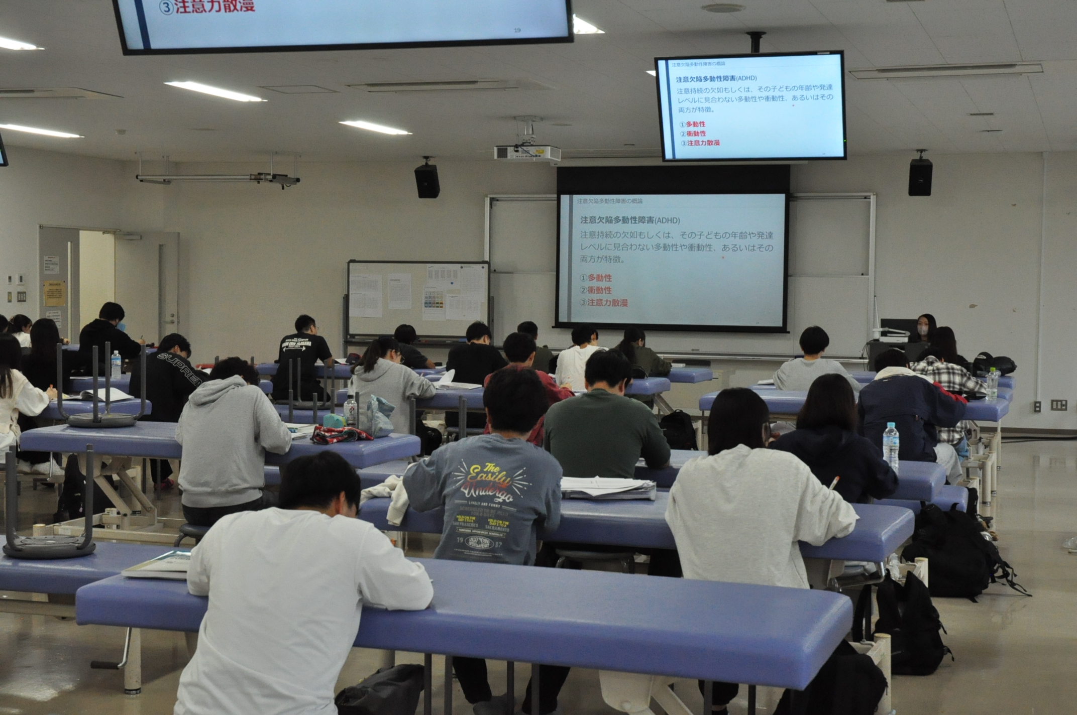 「発達障害理学療法総論」では、講義で学んだ知識を実際に体験を通して深める実習も行われました。