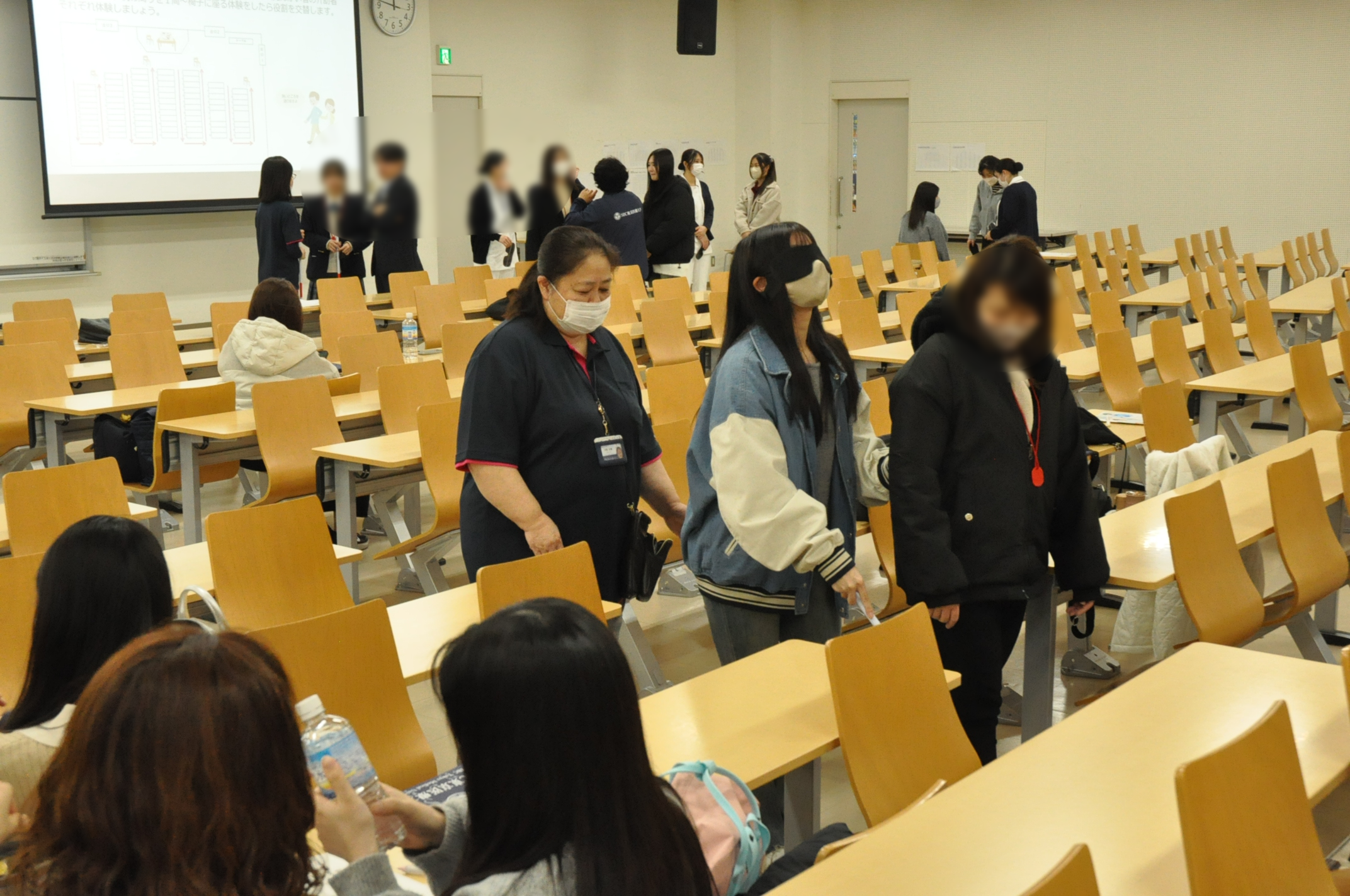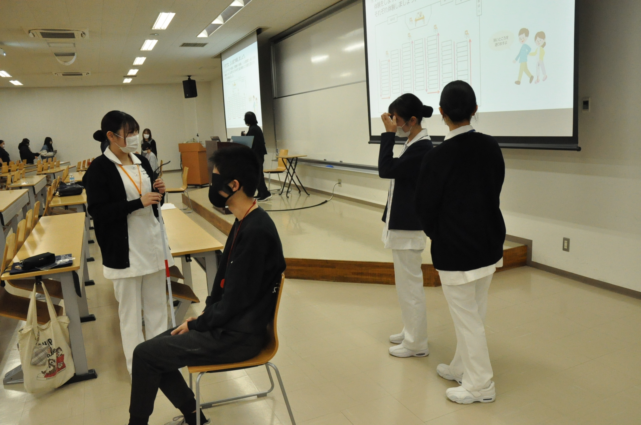 視覚障害への支援や看護の基礎をテーマに、看護師に求められる視点や考え方を体験。
