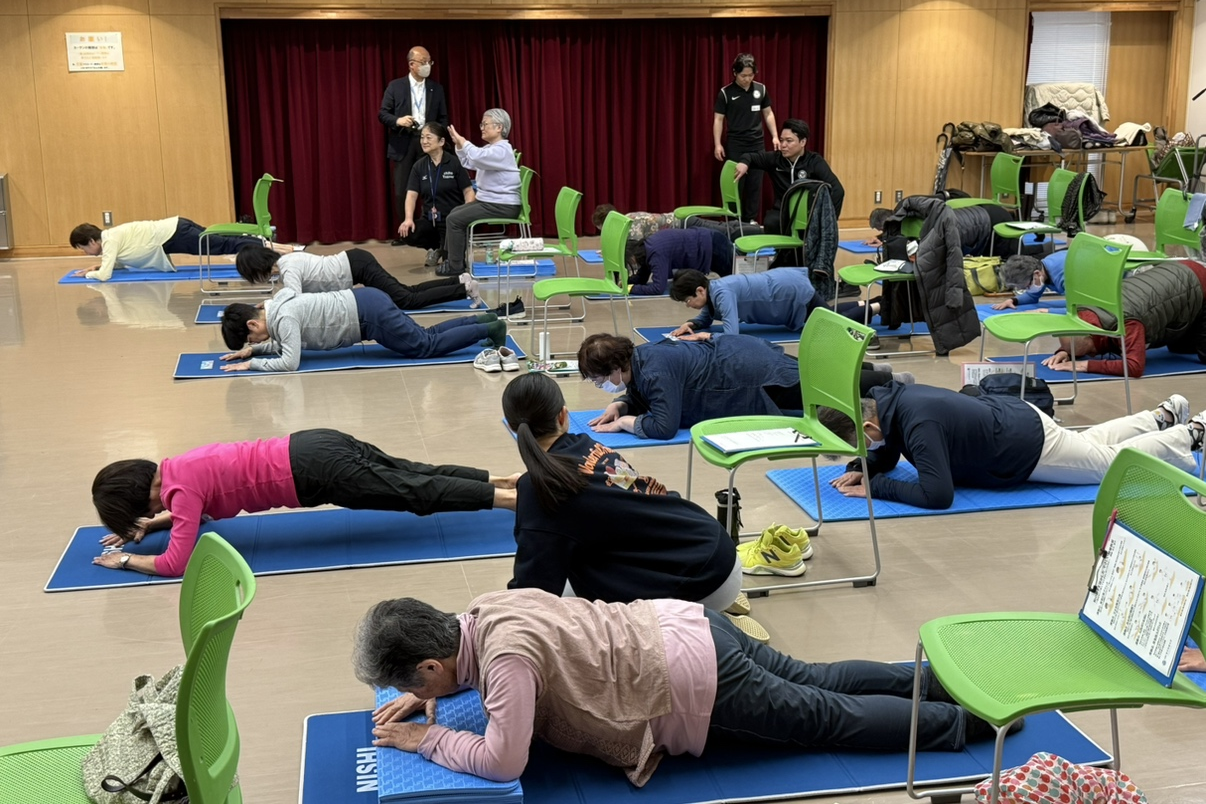 本教室は、「転ばない」「転んでもケガをしない」身体づくりを目的とした健康講座で、